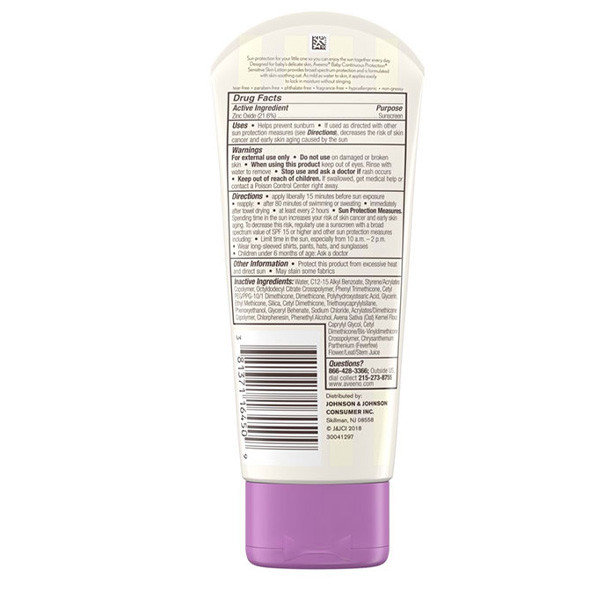 Apply Aveeno Baby Continuous Protection Sunscreen Lotion generously to your baby’s skin 15 minutes before sun exposure. Make sure to cover all exposed areas, including the face, ears, and back of the neck. Reapply every two hours or after swimming, towel drying, or excessive sweating to maintain optimal protection.