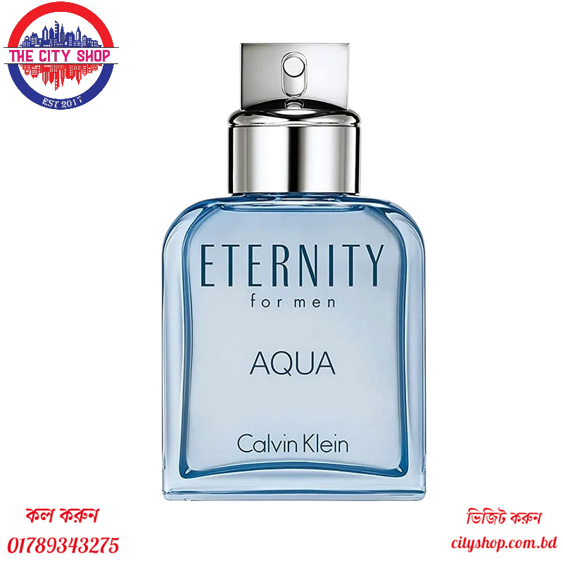 Calvin Klein Eternity Aqua is an aquatic fragrance and a bracing warm weather version of the original. The top notes are cool cucumber accords, citruses, lotus, and green leaves. The heart is hot and cold with notes of Sichuan pepper, mirabelle plum, lavender and cedar. The base notes are sensual while a base finishes with sandalwood, guaiac wood, patchouli and musk. It stays close to the skin so its perfect for office wear.