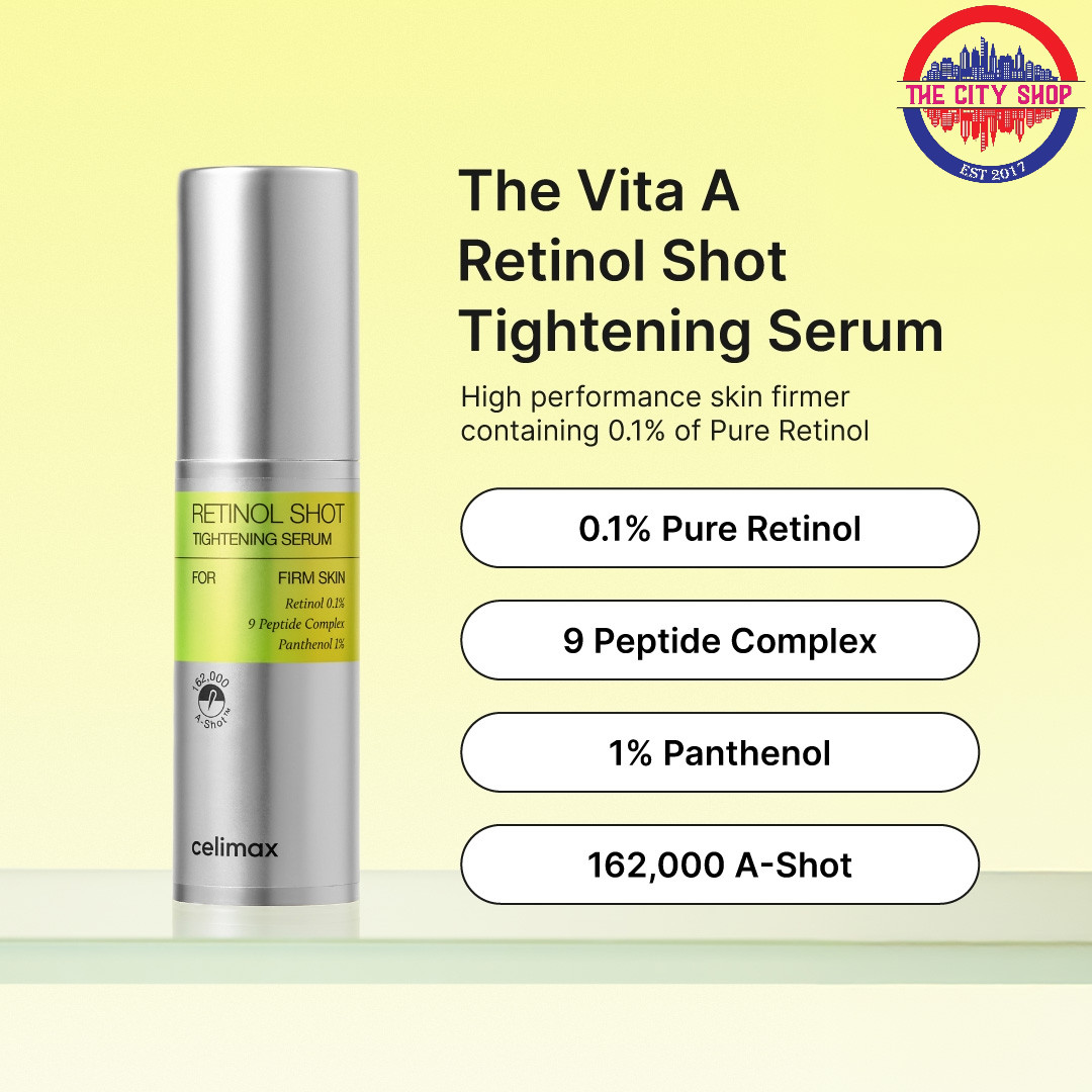 Celimax The Vita A Retinol Shot Tightening Serum - 30ml is a powerful anti-aging serum designed to improve skin elasticity, smooth fine lines, and restore youthful radiance. Enriched with Vitamin A (Retinol) and Niacinamide, this advanced serum helps boost collagen production, refine skin texture, and reduce visible signs of aging such as wrinkles and sagging.