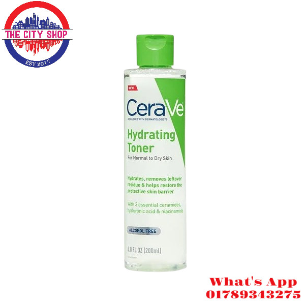 Cerave Hydrating Toner - 200ml is a gentle, alcohol-free toner that hydrates and replenishes your skin while restoring its natural barrier. This toner contains essential ingredients like Hyaluronic Acid, Ceramides, and Niacinamide, which help to soothe and hydrate your skin while locking in moisture.