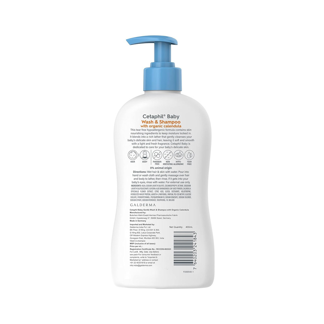 From the gentle skincare experts comes CETAPHIL Baby Wash & Shampoo, specially formulated to cleanse baby delicate skin and hair without drying and tested by dermatologists to be gentle on sensitive skin. It is made with a blend of soothing calendula extract derived from the marigold flower, vitamins E & B5 and aloe vera to keep baby soft, smooth and hydrated. As with all CETAPHIL Baby products, CETAPHIL Baby Wash & Shampoo contains NO parabens, colorants or mineral oil. It is hypoallergenic, gentle and safe for everyday use.