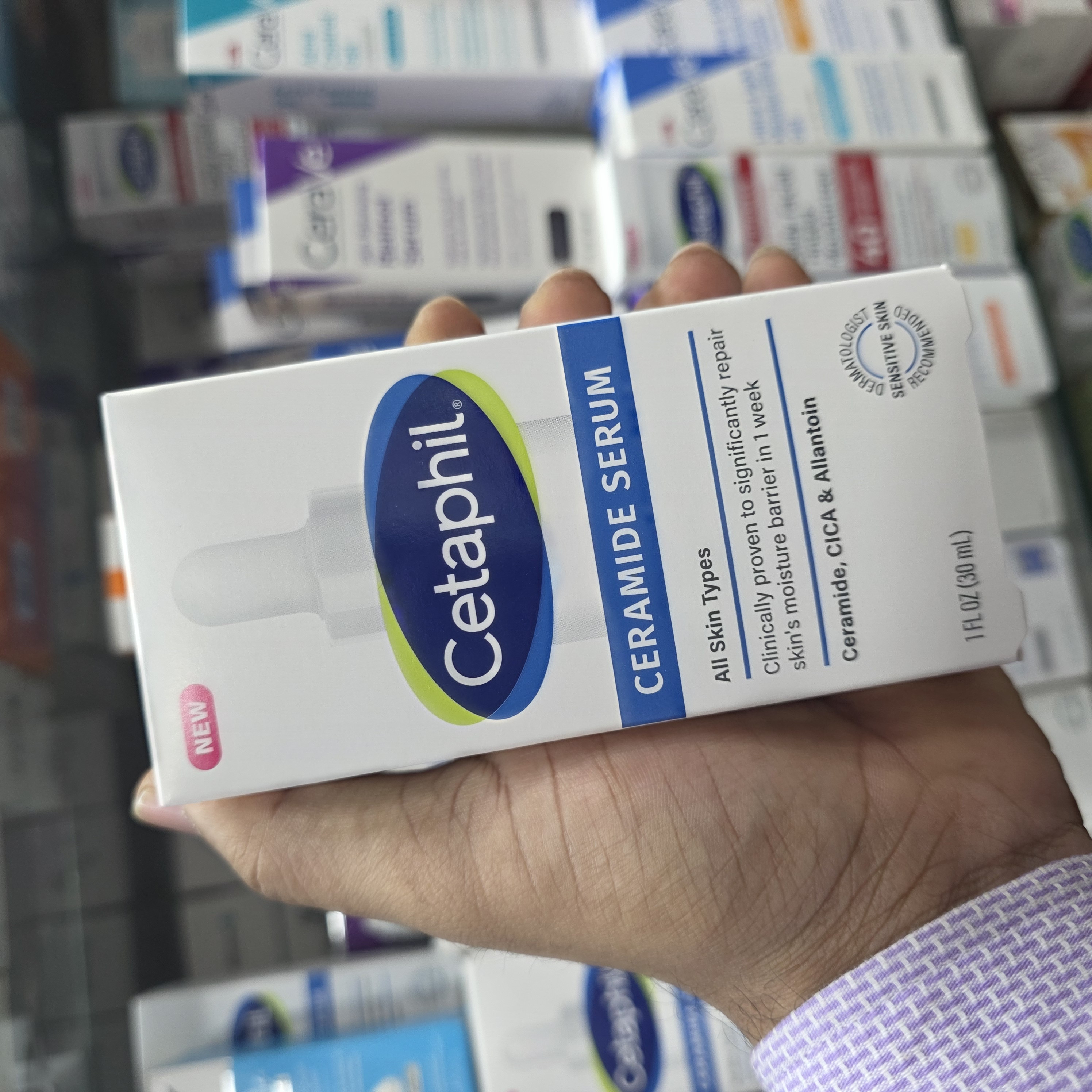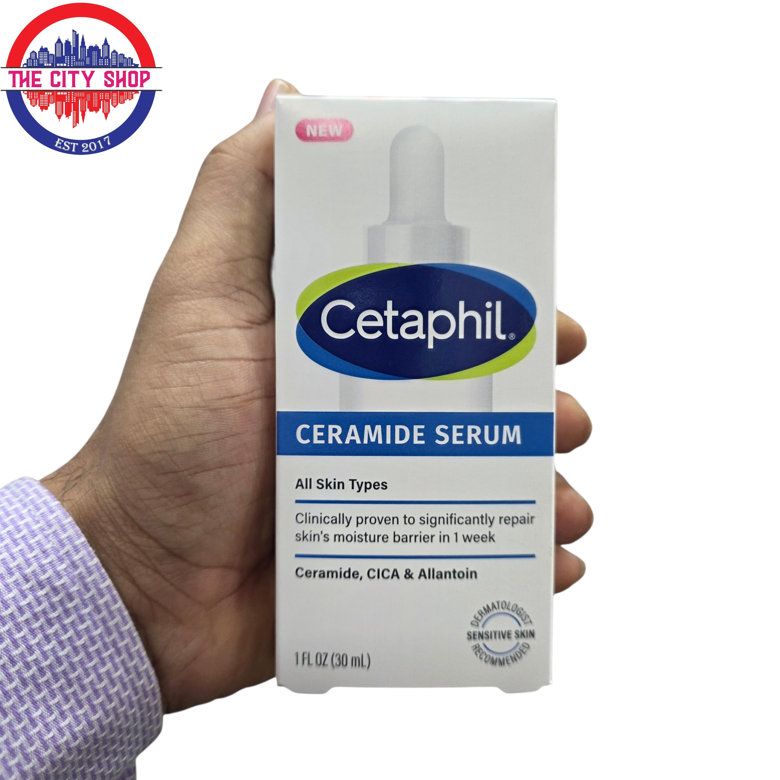 All Skin TypesClinically Proven to Significantly Repair Skin's Moisture Barrier in 1 WeekCeramide, CICA & AllantoinSensitive Skin - Dermatologist RecommendedTrusted by Dermatologists for 75 YearsParaben FreeWon't Clog PoresHypoallergenicLightweight, non-greasy formula is gentle enough for daily use on sensitive skin. Defends against 5 Signs of Skin SensitivityWeakened Skin Barrier Dryness Irritation Roughness TightnessClinically proven restoring serum locks in moisture for 48-hour hydration and significantly repairs skin's moisture barrier in 1 week.Formulated With: Ceramide- Helps restore skin's moisture barrier and defend against environmental aggressors. CICA - Helps defend against surface free radicals. Allantoin - Helps soothe sensitive skin and defend against dryness.
