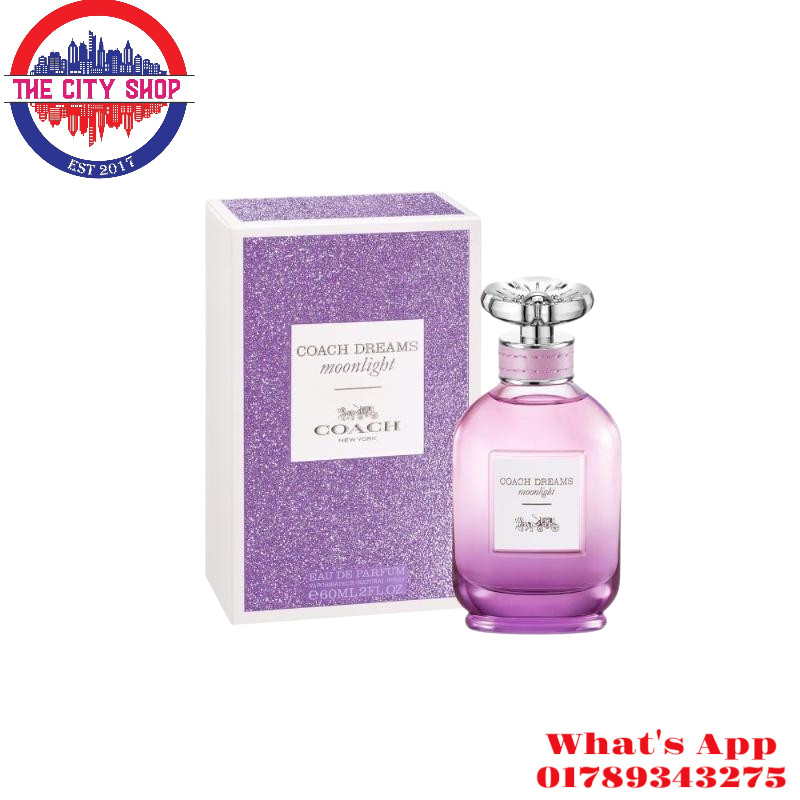 Coach Dreams Moonlight is an enchanting, invigorating fragrance inspired by the expansive, magical light of the night sky and the optimistic nature of dreaming. The scent opens with a burst of zesty bergamot and pink peppercorn, then blossoms into a delicate floral bouquet of fresh rose and jasmine before drying down to the warm, earthy notes of patchouli, vetiver and sweet tonka bean.