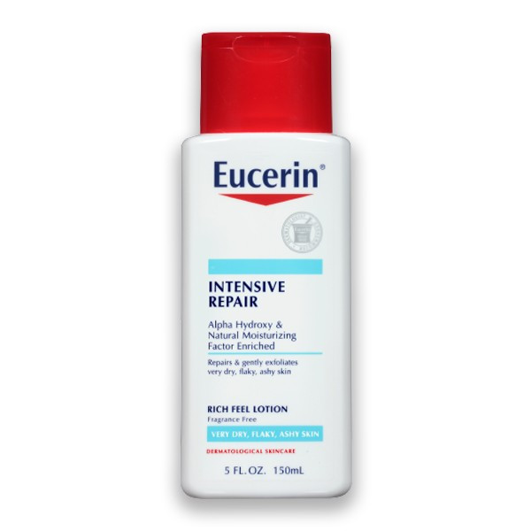 Eucerin Intensive Repair is a 3-dimensional system that moisturizes, exfoliates and conditions very dry, flaky skin. The deep moisture formula is enriched with Natural Moisturizing Factors that are found naturally in skin and immediately improves skin’s appearance. Intensive Repair Lotion is free of fragrances and dyes.