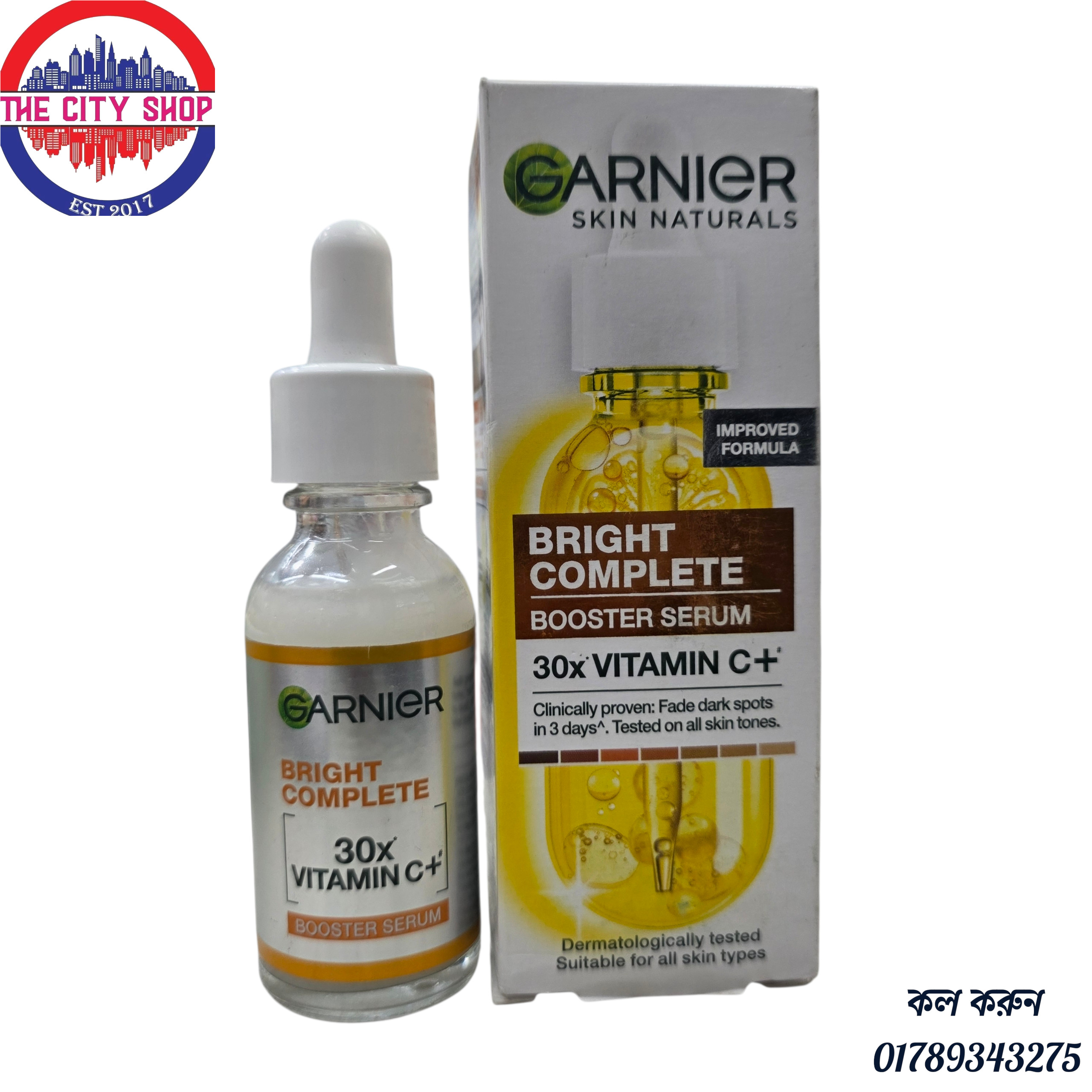 Garnier Skin Naturals Bright Complete 30x Vitamin C Booster Serum 30ml is a concentrated skincare treatment that brightens the skin. Formulated with 30x Vitamin C specifically, this serum is very effective in skin lightening, dark spot reduction, and providing a fresh, glowing appearance. This serum is perfect for women who desire healthy, radiant skin.