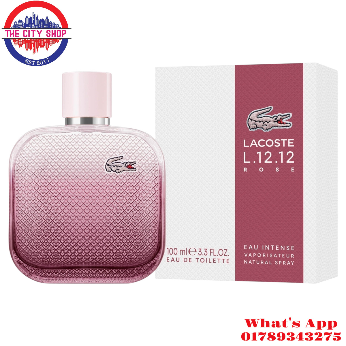 Feel the addictive freshness of L.12.12 Rose Eau Intense: a bold feminine scent with floral and woody notes.Inspired by the iconic Lacoste polo shirt, this intensely fresh fragrance for women blends the brightness of white tea, rose and cotton flowers with a warm accord featuring sunny solar musk and sandalwood. The contrast of warm and cold notes gives this floral, woody scent a uniquely elegant feel. The bottle and outer pack feature the iconic ‘petit piqué’ pattern, inspired by the fabric of our polo shirts. Each bottle also features Lacoste’s authentic embroidered crocodile, just like our polos.