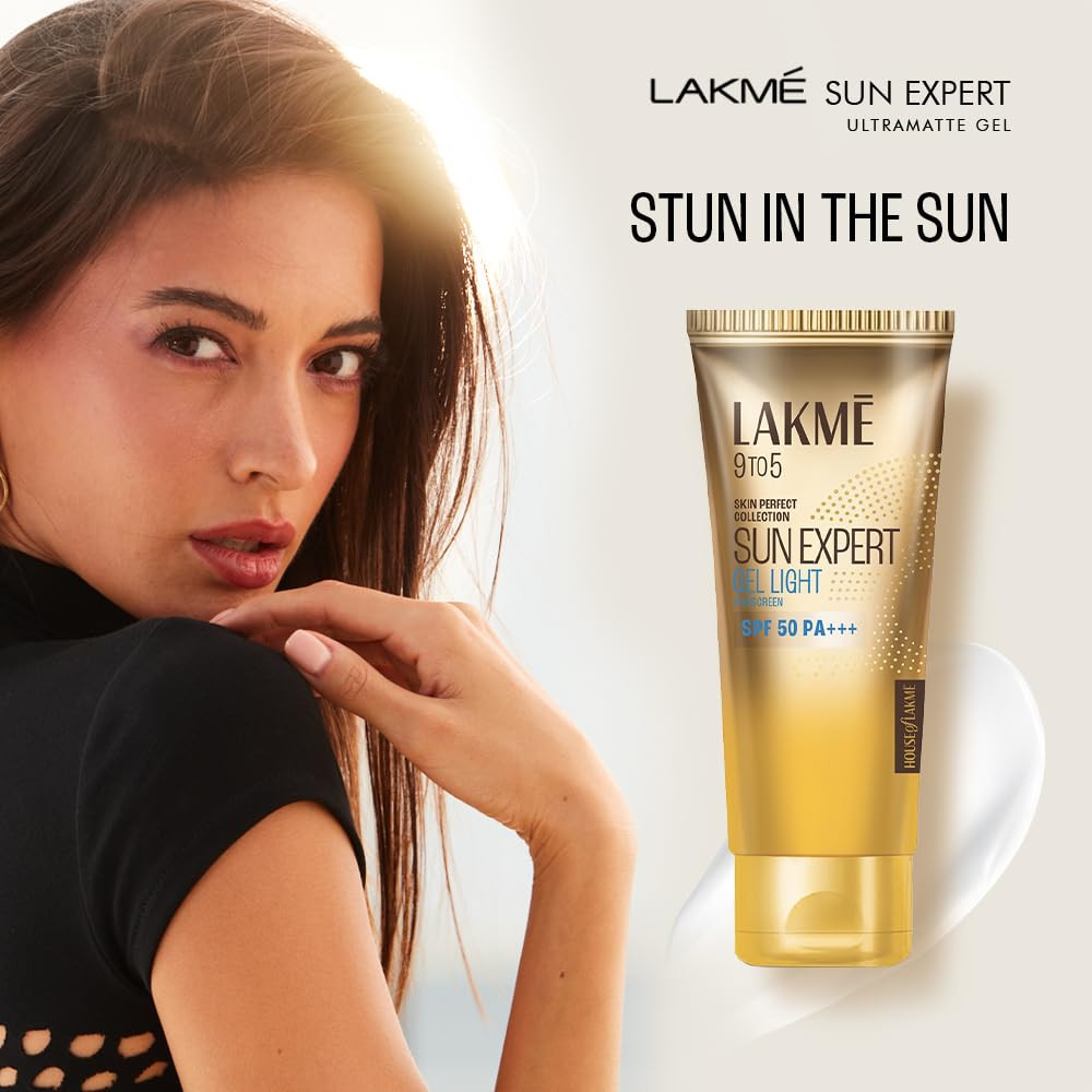 Lakme Sun Expert SPF 50 PA+++ Gel Light is a lightweight, non-sticky sunscreen designed to provide superior protection against harmful UVA and UVB rays. With a gel-based formula, it is perfect for daily use, especially for oily and combination skin types.