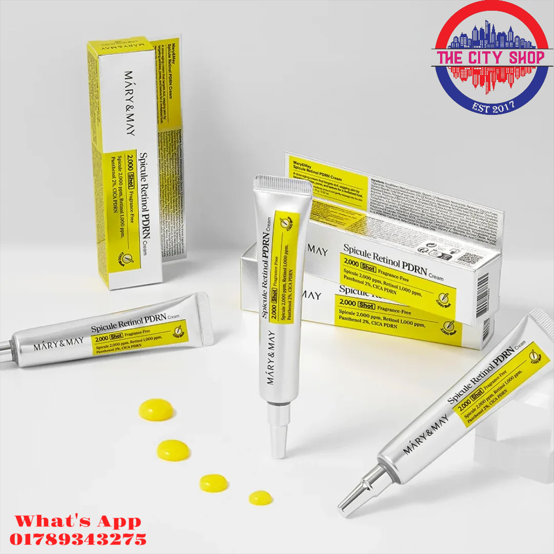 The formula is a dual-threat: while the retinol stimulates cell turnover and boosts collagen to firm the skin, the CICA-derived PDRN works to repair and soothe damaged cells. To ensure the treatment is comfortable even for sensitive skin, Mary & May has included their Safe 4X Formula—a blend of Panthenol, Ceramide NP, Hyaluronic Acid, and Allantoin. This creates a protective moisture barrier that prevents the typical dryness or peeling associated with retinol use. With clinical results showing over 120% improvement in pore area and significant wrinkle reduction, this 15g tube is a powerful addition to any evening routine. It's 100% original and directly imported at Cityshopbd, ensuring you get the authentic Korean "slow-aging" experience. Spicule Retinol PDRN Cream, a cream containing natural marine-derived micro-spicules that are 1/40 the size of pores, nano liposome retinol, and soothing ingredient panthenol that enhances the improvement of wrinkles, pores, and skin texture, with added CICA PDRN that both soothes and promotes recovery, 15g