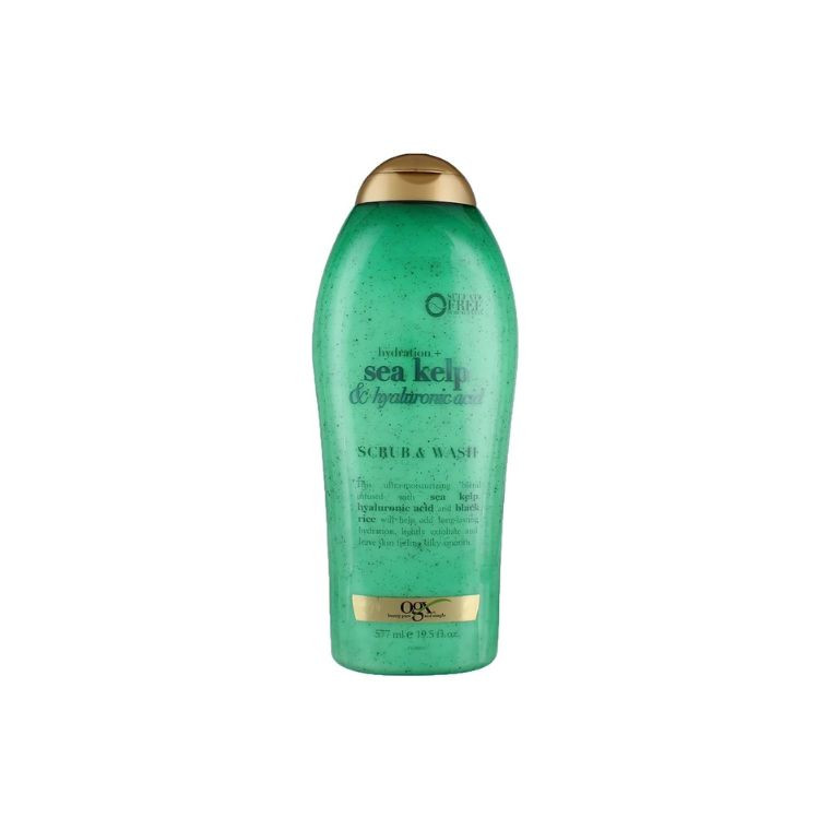 - This liquid body soap is a medium scrub that foams into a rich lather and rinses to reveal softer, more supple skin. Cleanse your body and awaken your senses with OGX Sea kelp & Hyaluronic acid wash & Scrub.