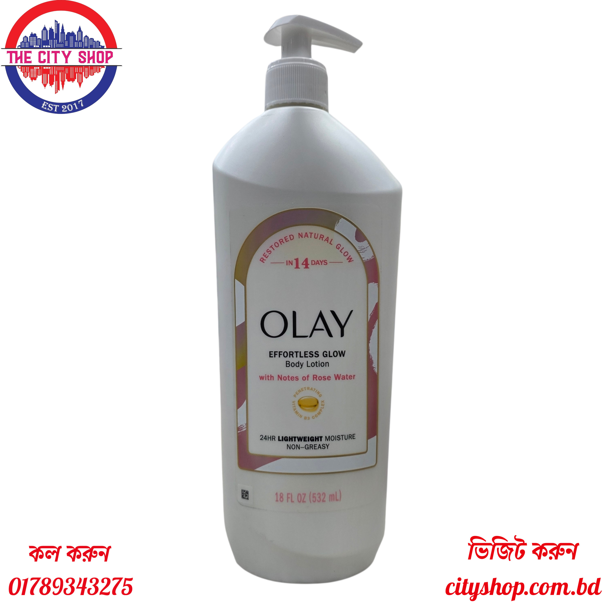 Own that glow with a body lotion that penetrates the skin's surface with deep moisture. Olay's lightweight moisturizer deeply replenishes hydration to restore your skin's natural glow, adding radiance to your day with less effort. Delicate notes of rose water awaken the senses with fresh scent. This Olay body lotion absorbs instantly for 24 hours of lightweight moisture, and it's formulated with Vitamin B3 Complex to hydrate and strengthen your skin barrier, leaving you feeling fresh, revitalized, and amazing in your own skin.LAVISH SCENT: Enjoy the pleasant scent with notes of rose water RESULTS IN DAYS: Experience restored, healthy skin with a natural glow in 14 daysDirections: For all skin types: Use daily all over your body. Elevate your body care routine with Olay Body Wash.At Olay, we're serious about our commitments. Our Olay Skin Promise to you is zero skin retouching in all advertising. Olay is the first mass skin care brand in the U.S. to take this stance because we know real beauty is honestly beautiful. We also guarantee you'll love your Olay product.