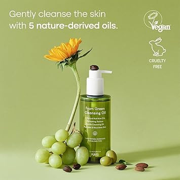 PURITO From Green Cleansing Oil is a gentle yet powerful oil-based cleanser designed to remove makeup, sunscreen, and impurities without stripping the skin’s natural moisture. Formulated with 5 plant-based oils, including olive, sunflower, and jojoba oils, it effectively dissolves dirt and excess sebum while keeping the skin hydrated and balanced. This fragrance-free, essential oil-free formula is perfect for sensitive skin and supports a healthy, refreshed complexion.