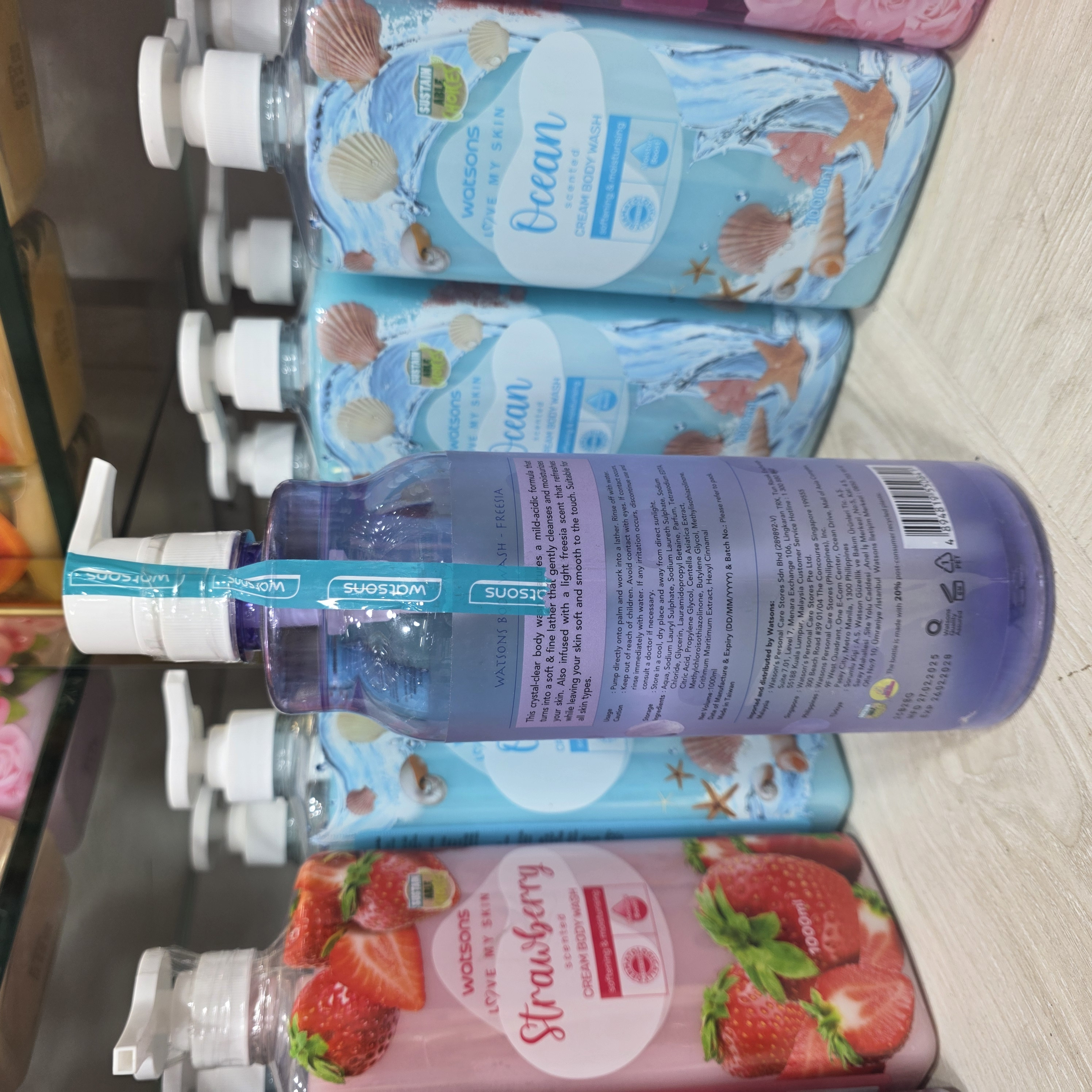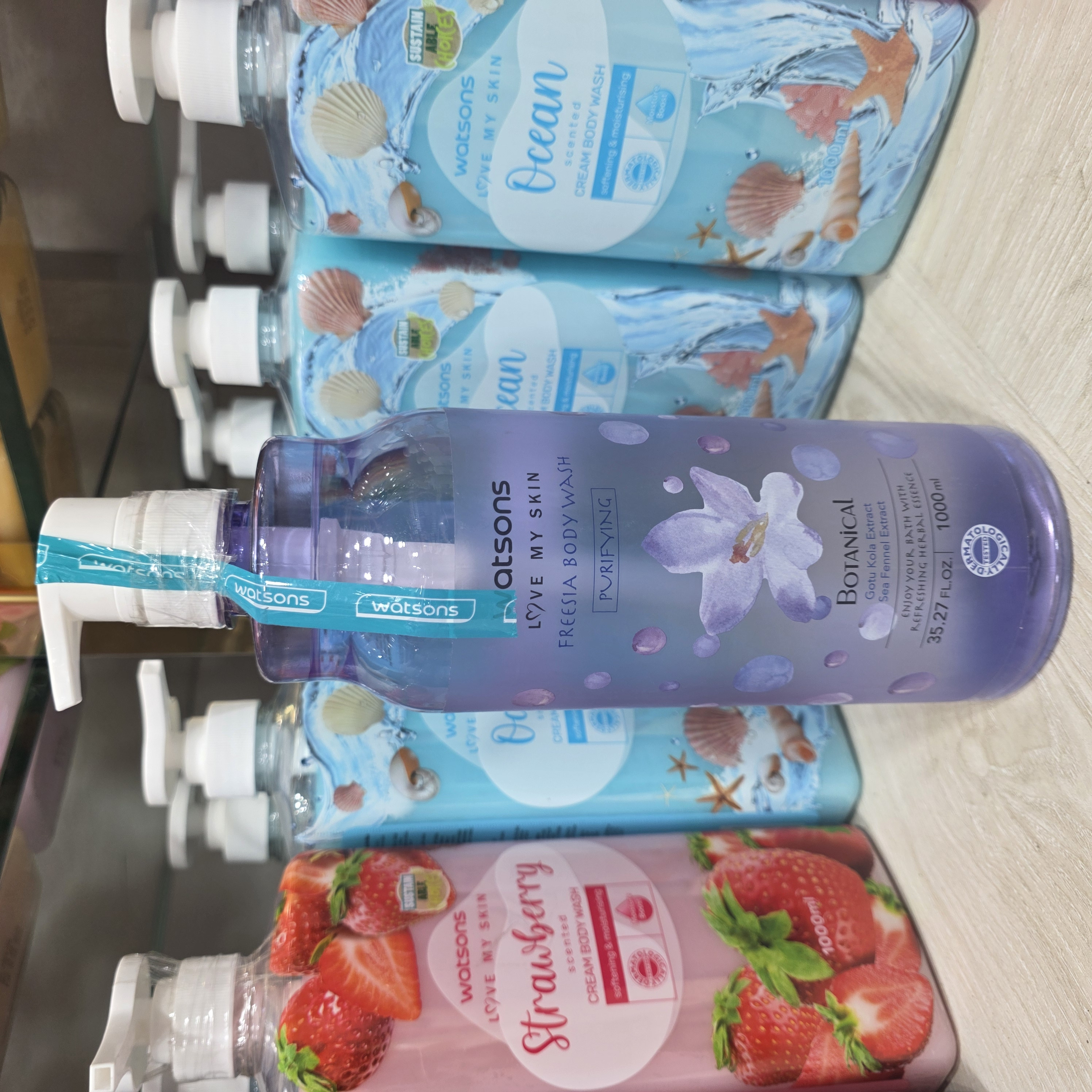 Part of Watsons' commitment to sustainability, the bottle is made with 20% recycled plastic. Suitable for all skin types and dermatologically tested, the economical 1000ml size offers an affordable, fragrant, and gentle daily cleansing solution for the entire family.Description: This crystal-clear body wash features a mild-acidic formula that turns into a soft & fine lather that gently cleanses and moisturises your skin. Also infused with a light freesia scent that refreshes while leaving your skin soft and smooth to the touch. Suitable for all skin types.