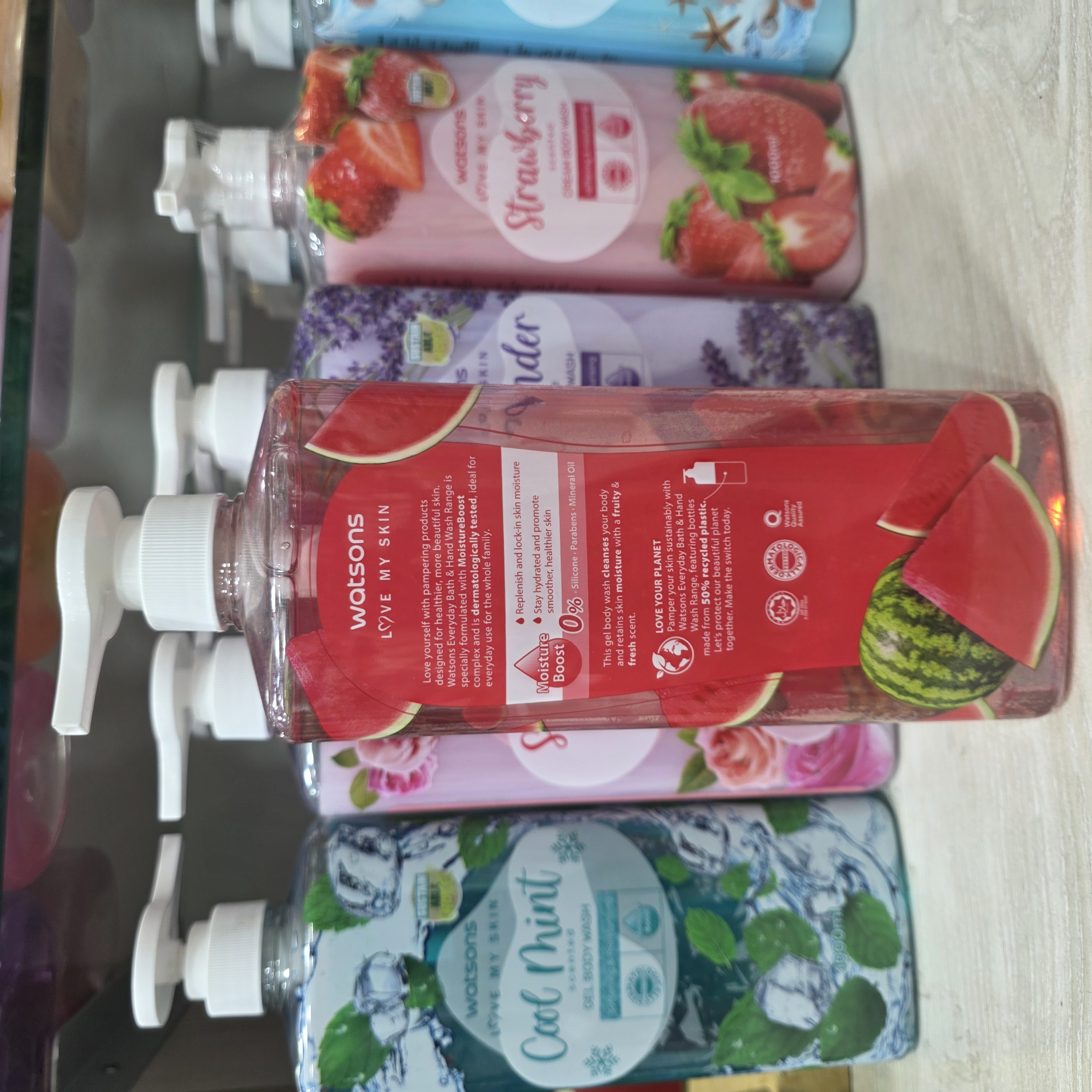Promote a reduced usage of virgin materials by using recycled content instead. The bottle is made with 50% recycled plastic. Watsons Water Melon Scented Gel Body Wash thoroughly cleanses your body and helps your skin retain moisture.