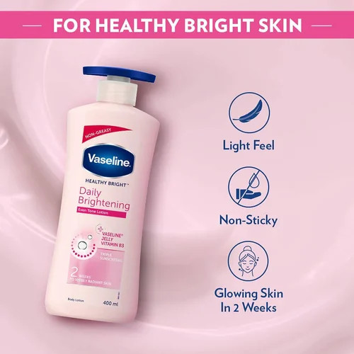 Vaseline® Healthy Bright, our best Skin Brightening lotion helps heal* dry damaged skin and that restores for naturally glowing skin in 2 weeks.
