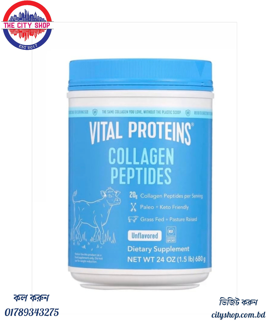 Vital Proteins Collagen Peptides is a high-quality, easily digestible collagen supplement designed to support overall health and wellness. This product is crafted from grass-fed, pasture-raised bovine collagen to ensure the highest standards of quality and efficacy.