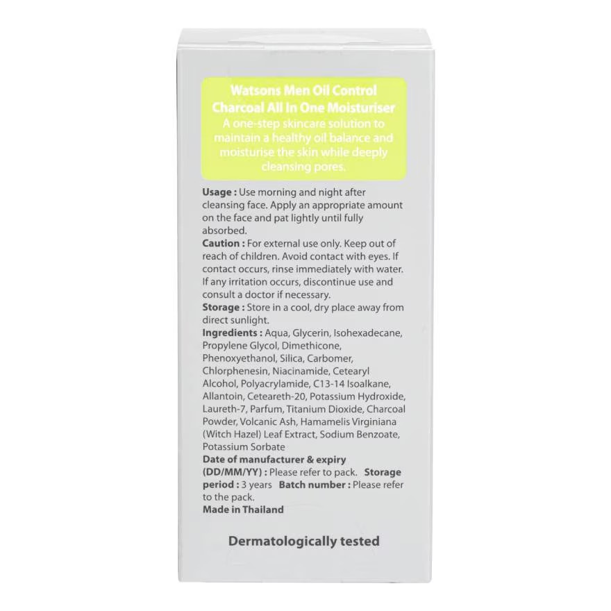 A one-step skincare solution to maintain a healthy oil balance and moisturise the skin while deeply cleansing pores.Watsons Men Oil Control Charcoal All In One Moisturiser is sustainable Choices product.